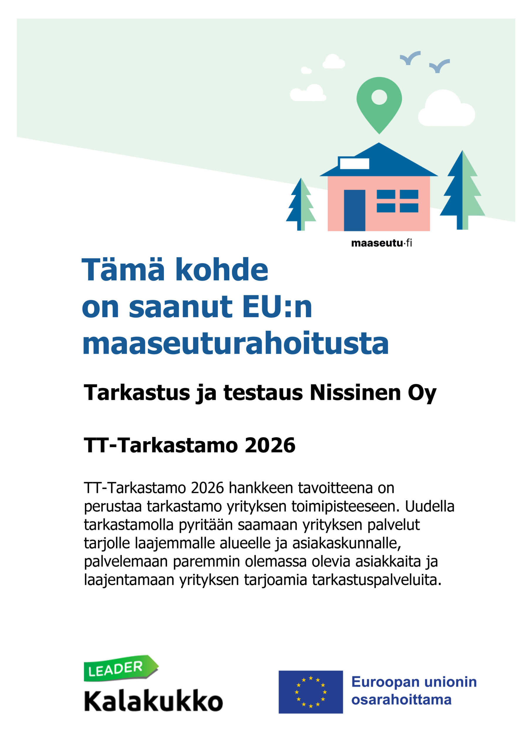 Tarkastus ja testaus Nissinen Oy on vuonna 2018 perustettu yritys jonka päätoimialaan kuuluu kuormausnostureiden tarkastus, hitsauskoordinointi ja NDT- tarkastus.